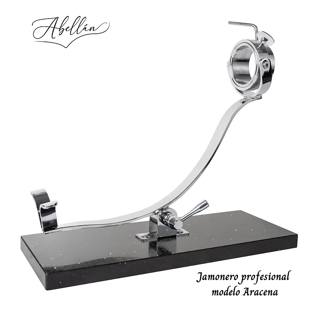 El Jamonero Basculante Giratorio Aracena Abellán APM 500 Negro es la insignia de los productos de Jamoneros Abellán , 100% fabricado en Murcia, España. Este soporte para jamón es el resultado de años de experiencia e innovación, diseñado para ofrecer una experiencia de corte superior, ideal tanto para profesionales como para aficionados que desean la máxima precisión y comodidad al cortar jamón.[bg_collapse view="link" color="#000000" expand_text="Ver descripción completa" collapse_text="Ocultar descripción" ]
