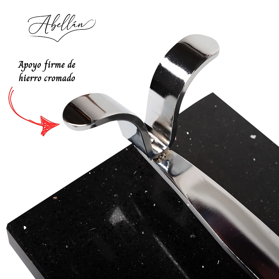 1. Fabricación en Hierro Cromado: El herraje de este jamonero está fabricado en hierro de alta calidad, con un acabado cromado que no solo garantiza una estética elegante y profesional, sino también durabilidad y resistencia. El cromado protege el jamonero frente a la oxidación y facilita su limpieza, asegurando que siempre esté en perfectas condiciones.