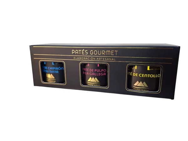 Patés Gourmet Pack de 3 Mareterra personalizable. Elige tus 3 patés favoritos e indícalos en los comentarios del pedido. Un pack gourmet ideal para regalar, compartir o disfrutar en casa con una selección a medida.