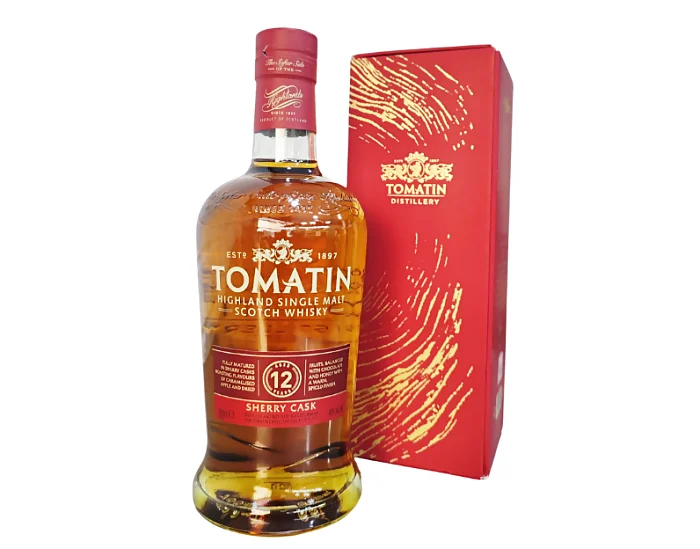 Envío GRATIS a partir de 200€ / solo envíos penínsulaEl Whisky Tomatin 12 Años Sherry Cask 70cl es un single malt escocés madurado durante 12 años en barricas de Jerez, que destaca por su suavidad, complejidad y carácter único. Con notas de frutas maduras, chocolate y especias, es ideal para disfrutar solo, con agua o acompañado de quesos curados y chocolate negro. Una elección perfecta para paladares exigentes.